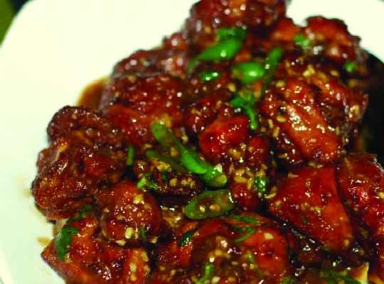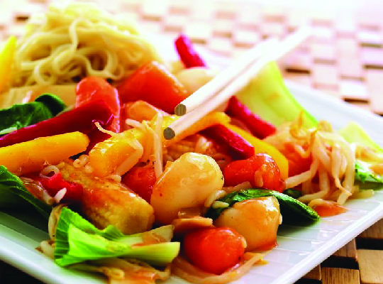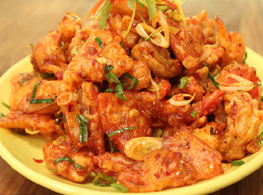 16 Items of meat, seafood and vegitables with assorted flavored sauces and dips.